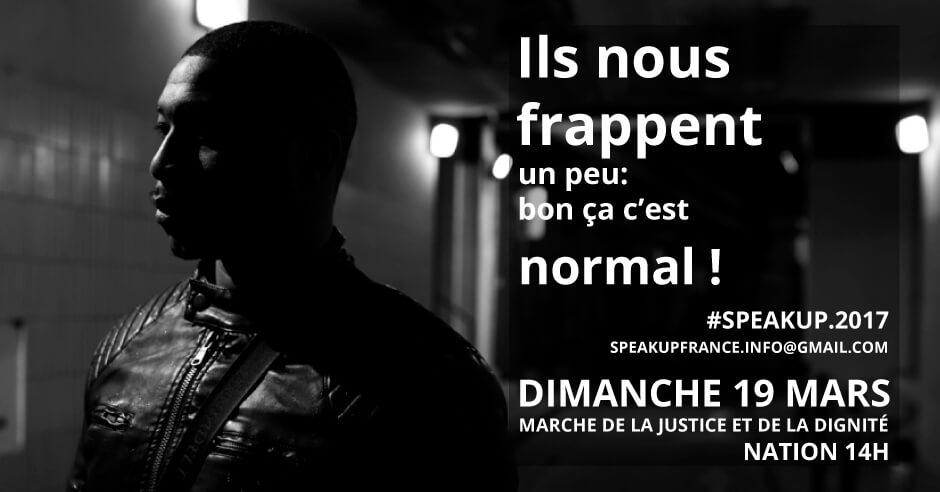 Du coup j’ai voulu essayer d’en parler et d’en faire parler différemment, de les prendre au sérieux. Depuis décembre, je recueille des témoignages qui parlent de violences policières de toutes sortes, symboliques, physiques, directes ou indirectes (quand on est témoin par exemple). Le projet, documentaire et militant, s’appelle Speakup .
