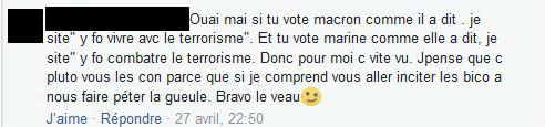 L’option du vote FN s’étale elle aussi régulièrement sur les réseaux sociaux. Sur le groupe Facebook « Adopte un teufeur » on lance des débats comme « Qui a voté Le Pen, et pourquoi ? »