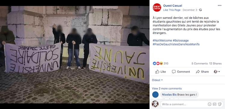 Du côté de Ouest Casual, on poste une photo d’une banderole volée à des « étudiants gauchistes ».