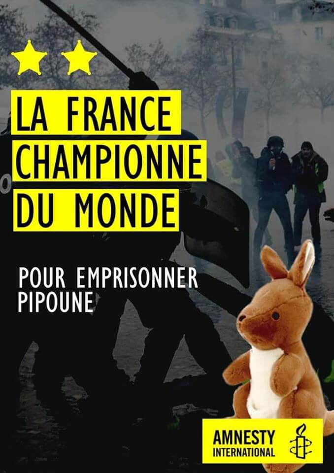 L’histoire ressort sur Facebook il y a quelques jours. Étienne visite le Muséum d’histoire naturelle, près d’un an après avoir perdu sa mascotte. « Voir des kangourous, ça m’a fait penser à ma peluche. Je me suis dit qu’il y avait de quoi faire des mèmes », raconte-t-il. Il se lance dans une série de quatre montages sur le groupe. À coup de « Rendez Pipoune ! », l’histoire du wallaby devient virale. Au-delà de la simple histoire potache, certains s’en servent pour dénoncer les violences policières.